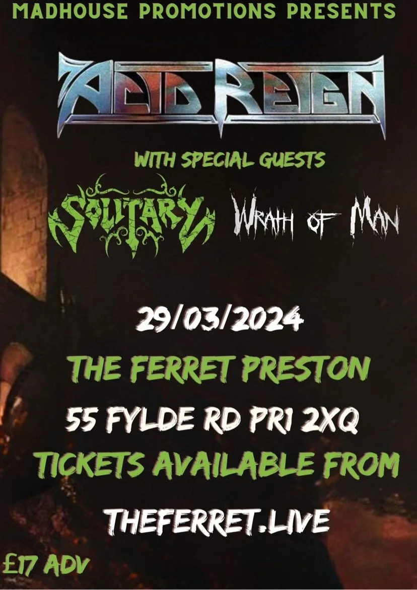 Madhouse Promotions Presents: Acid Reign with special guests Solitary & Wrath of Man 🤘🔥
