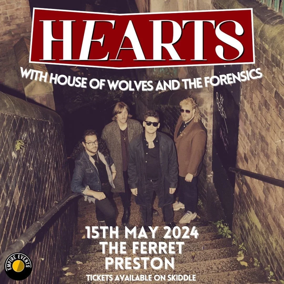 Sharing an impressive story of extensive touring, playing venues all over the world, the band have thousands of hours of adventures behind them. These experiences, and a shared passion for playing live is the foundation of Hearts.
