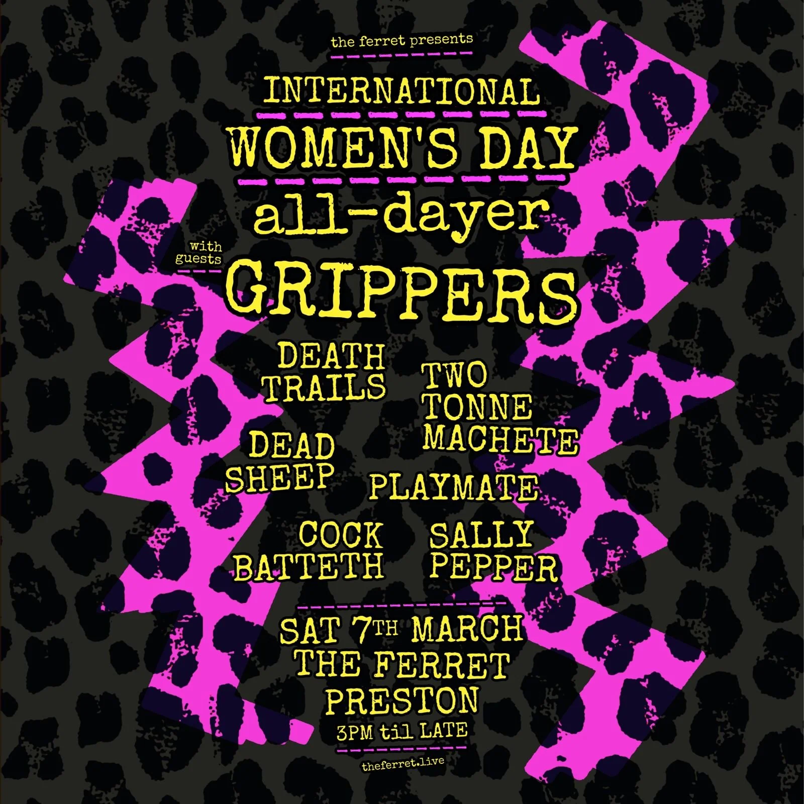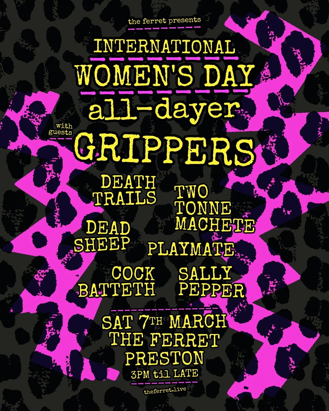 Madrid street punks GRIPPERS, joined by Death Trails, Two Tonne Machete, Dead Sheep, Playmate, Cock Batteth + Sally Pepper for a female-led all-dayer.