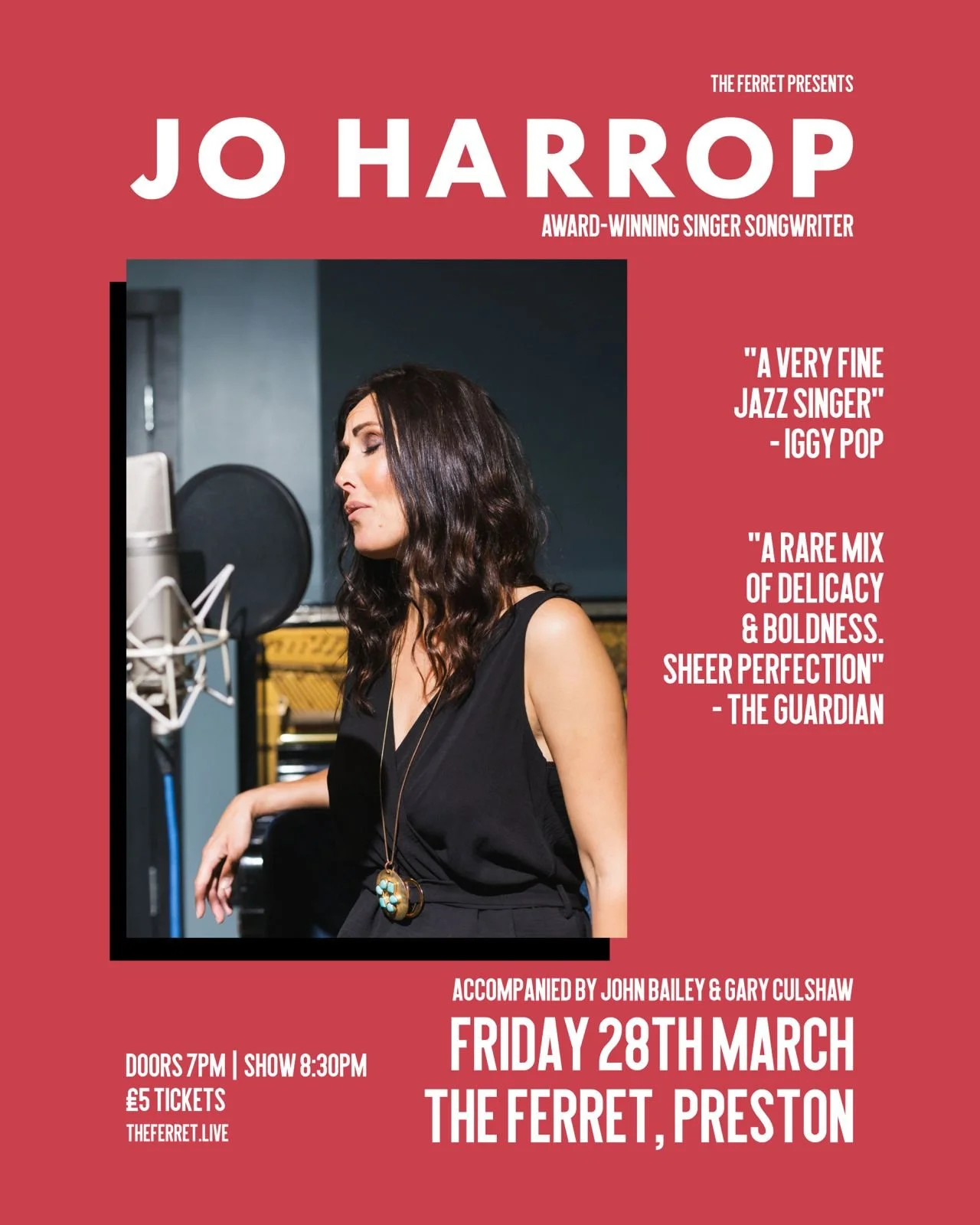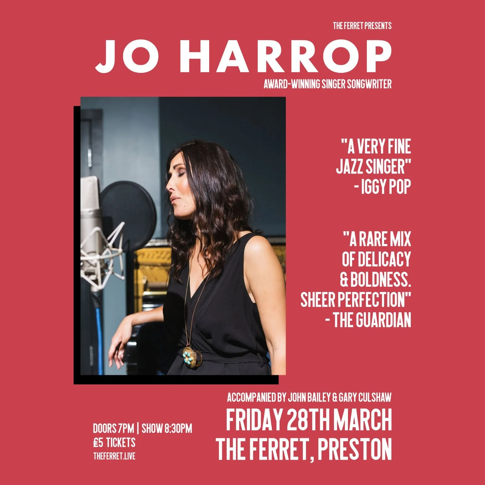 Few artists can convey the depth of emotion Harrop evokes every time she opens her heart to sing. Anyone who hears her music knows exactly how she feels; the smouldering sadness flowing through her voice speaks for itself. Her songs are where she lives. Music is a form of catharsis for Jo Harrop, an award-winning artist who would rather show you her battle scars than her trophies.