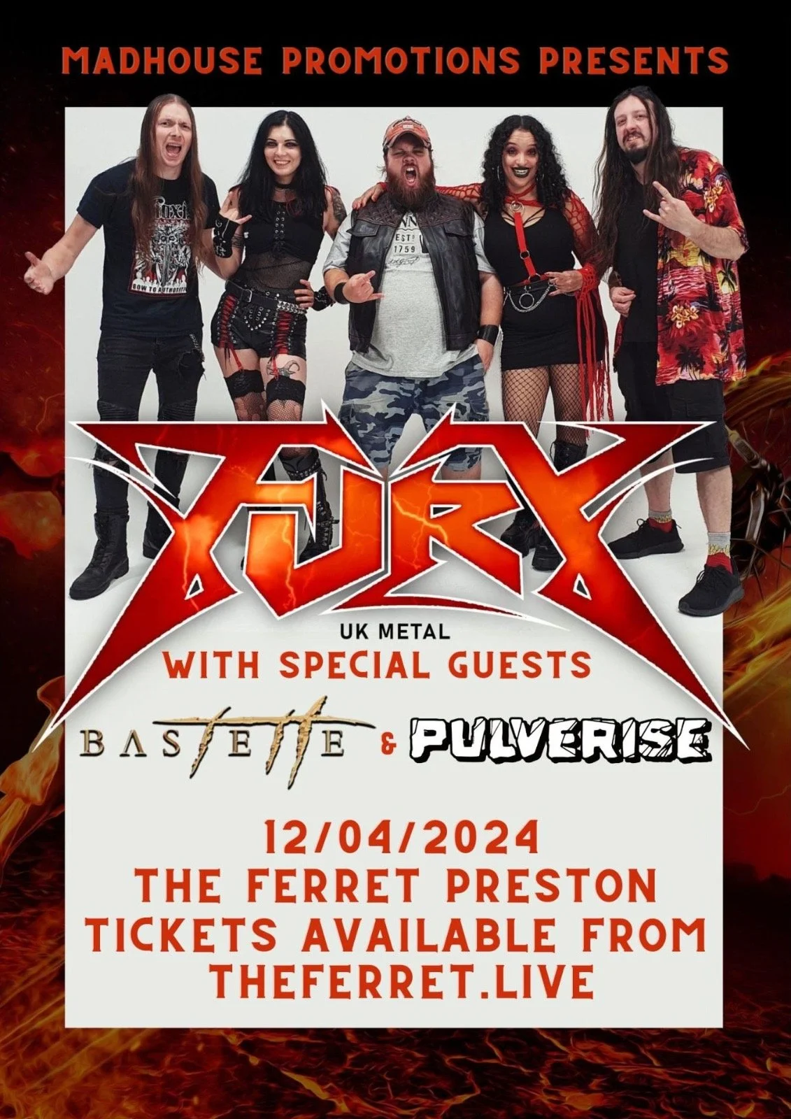 Madhouse Promotions Presents:Fury (UK metal)with Bastette & PulveriseThe Ferret | Preston12th April 2024 | Doors 7pmTickets: https://skiddle.com/e/37263619