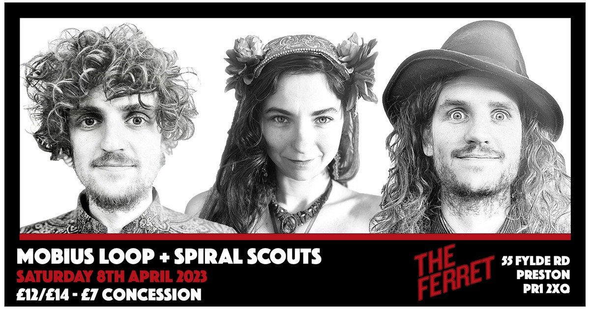 🗓️Saturday, 8th April 2023 📍The Ferret, Preston 🎫🔗https://www.skiddle.com/whats-on/Preston/The-Ferret/Mobius-Loop--Spiral-Scouts--PRESTON-/36311045/