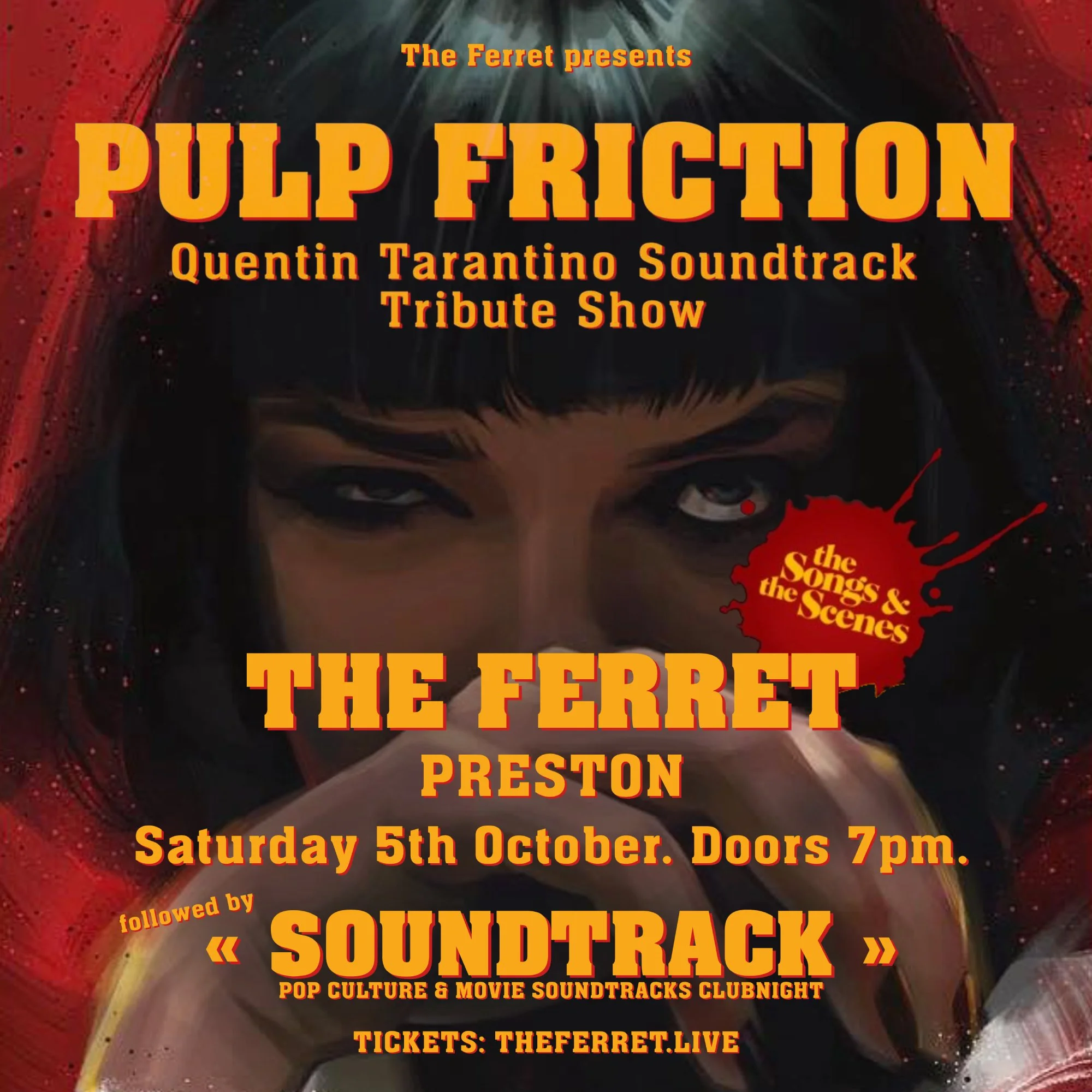 The Ferret doors open for pre-drinks at 4:30pm. Show doors open 7pm. Full live band Pulp Friction show 8:30pm until 10:30pm. After party with DJ Fil Milton from 10:30pm til late.