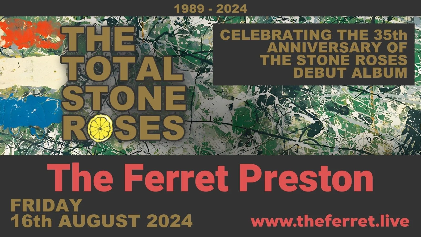 Back to All Events The Total Stone Roses Friday, August 16, 2024 7:00 PM 11:55 PM The Ferret 55 Fylde Road Preston, England, PR1 2XQ United Kingdom (map) Google Calendar ICS The Total Stone RosesThe UK’s BEST Stone Roses Tribute return to the stage to celebrate the 35th Anniversary of the eponymous Stone Roses Debut Album! To buy tickets for this event please visit our events page: The Total Stone Roses tickets from Skiddle . Ticket sales powered by Skiddle If you love I Am The Resurrection, Made Of Stone, Fools Gold, Waterfall, She Bangs The Drums and many more then do not miss this exclusive opportunity to hear your favourite Stone Roses anthems performed live by the UK’s finest tribute!———The Total Stone RosesFriday 16th August, 2024The Ferret | PrestonTickets: skiddle.com/e/38091080