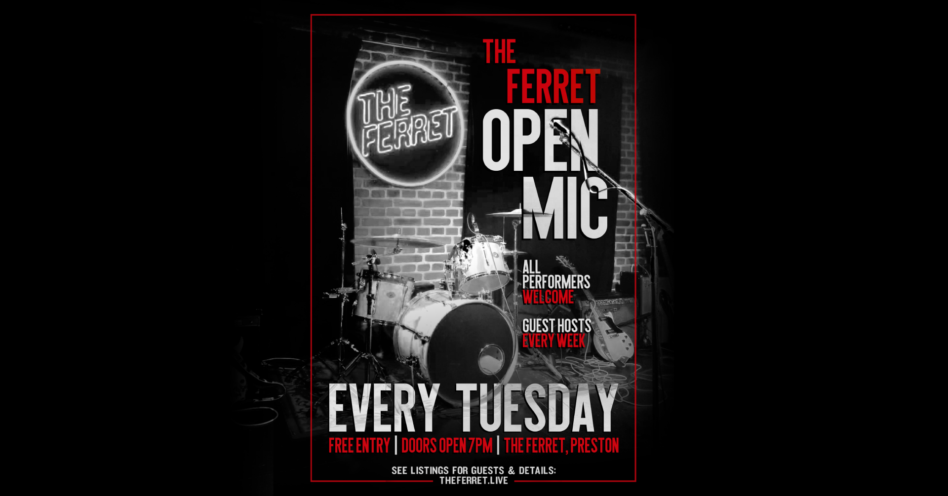 Our WEEKLY Open Mic & local live music event, featuring local musicians, visiting bands & guest hosts every week. We'll be opening up The Ferret stage for an Open Mic, and inviting local bands & musicians to showcase new material. Each Tuesday will feature an exciting mix of new & experienced players, showing us what they've got.