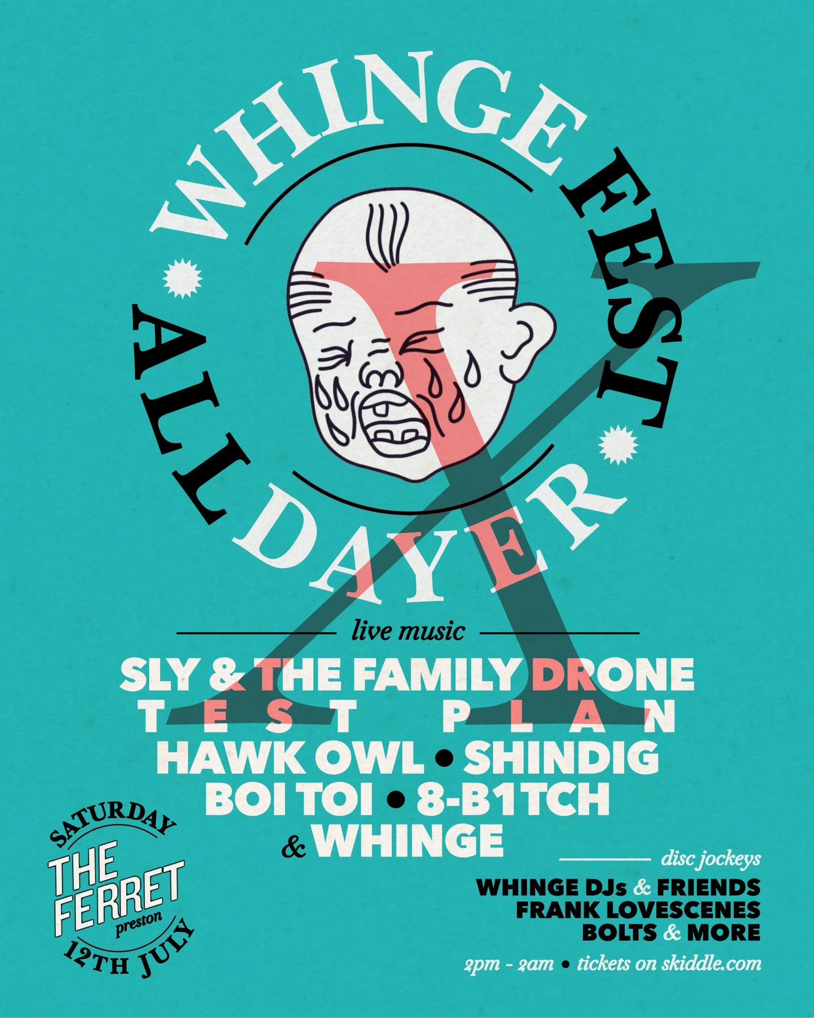 Established in 2019, Whingefest was a daft idea born in The Ferret beer garden late one night. And here it is: the 11th edition of this biannual all-dayer. We've featured roughly 70 artists on the previous editions of Whingefest, including Loose Articles, Déjà Vega, IDLES (DJ), YAANG, Duvet, SLAP RASH, Pyncher, Peaness, Test Plan, Sly & The Family Drone, Mums, The DSM IV, Tits Up, Michael, The Battery Farm, Hauspoints, Gen & The Degenerates, Currentmoodgirl & many many more.